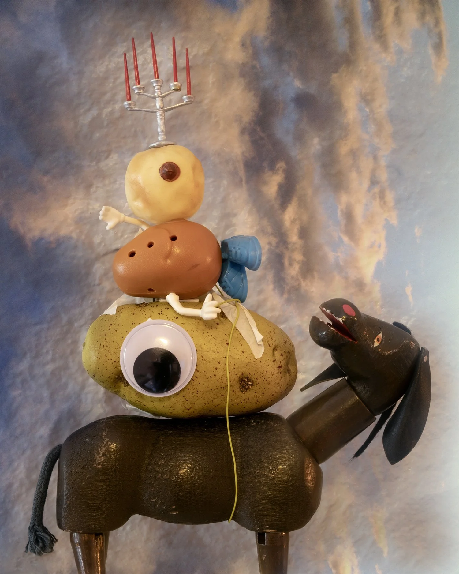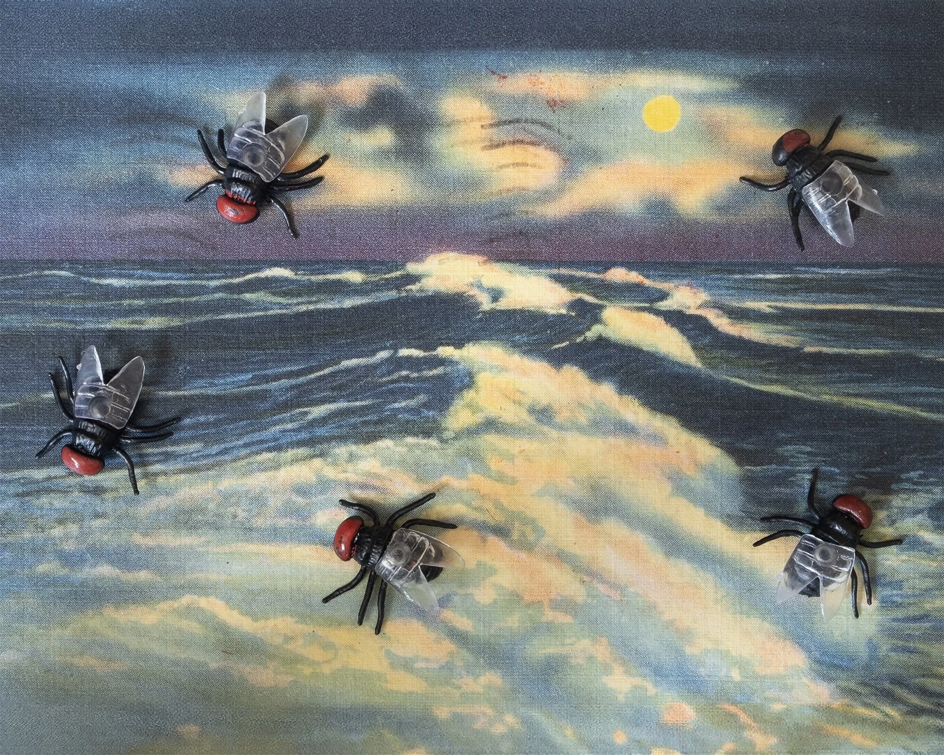 Soft Fire, 2024. Inkjet on Newsprint, Toys from Westmoreland’s Collection, Cyanotype on Fabric.